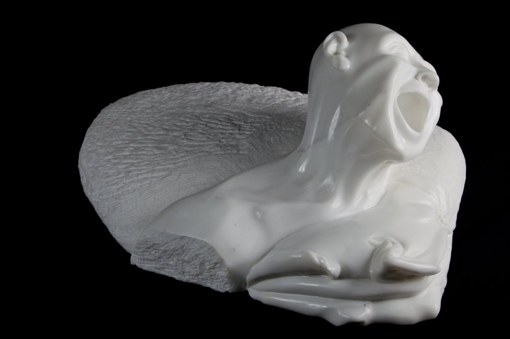 L’esperienza è molto forte e l’artista ne rimane profondamente toccato. Nei giorni successivi sentirà l’esigenza interiore di rivivere quel momento, di interpretarlo estraendolo da un blocco di marmo. La scultura si intitolerà Agonia. Un’ opera in marmo atipica per l’impostazione visiva espressionista e allucinata.
